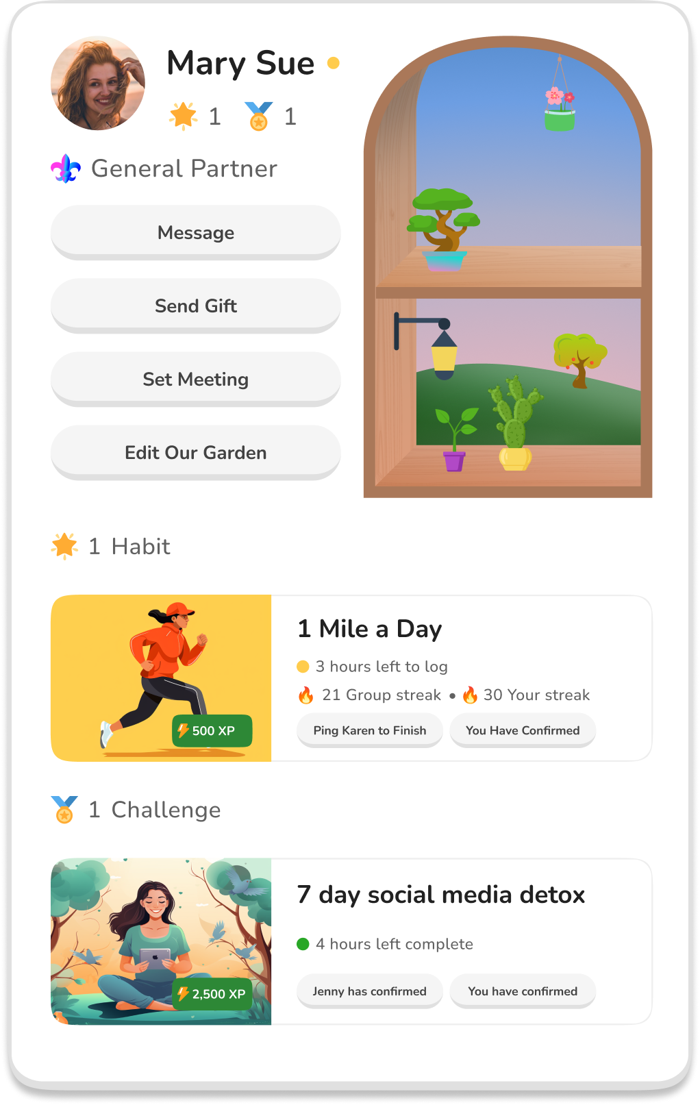 With an Accountability Partner by your side, every challenge becomes a shared triumph. Master your habits, compete in challenges, and visualize your growth through your personal or co-created gardens. For those desiring constant 24/7 support, let our AI partner guide you.