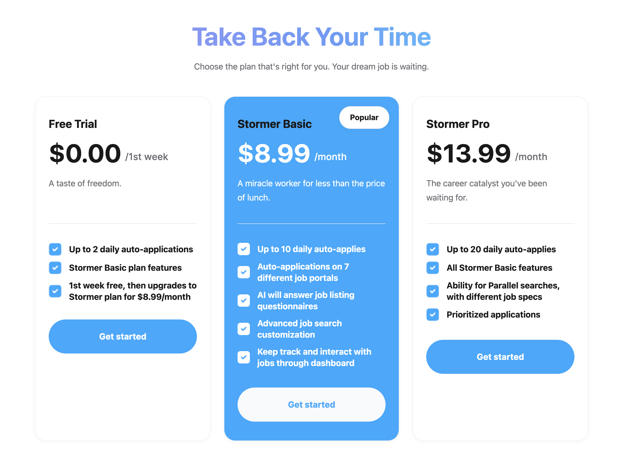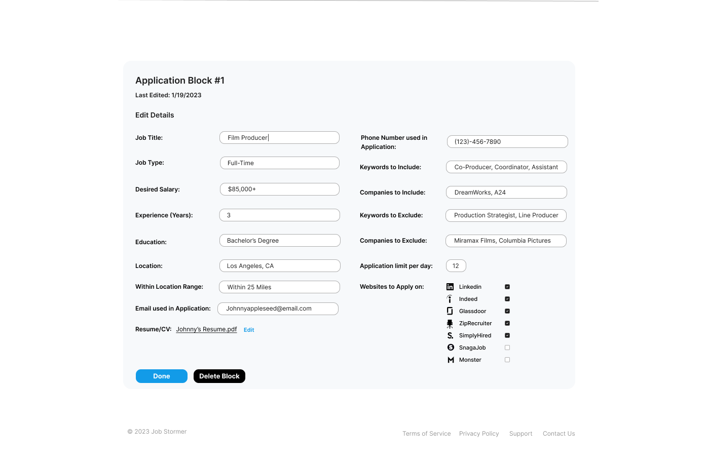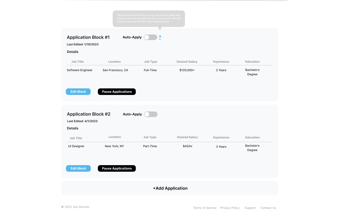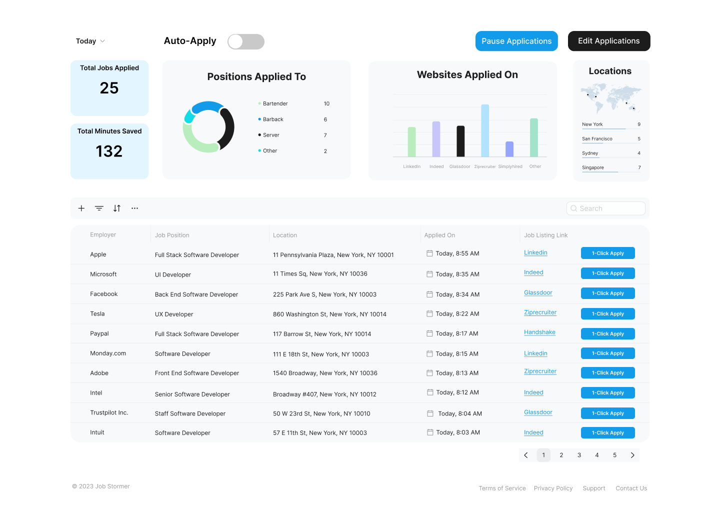 One of our main focuses was to simplify the signup process. We designed it so users wouldn't need to create or link accounts with job boards. Instead, our AI system would create 'ghost' accounts for them. These accounts would automatically apply to jobs and send the job details back to the user's Job Stormer dashboard.