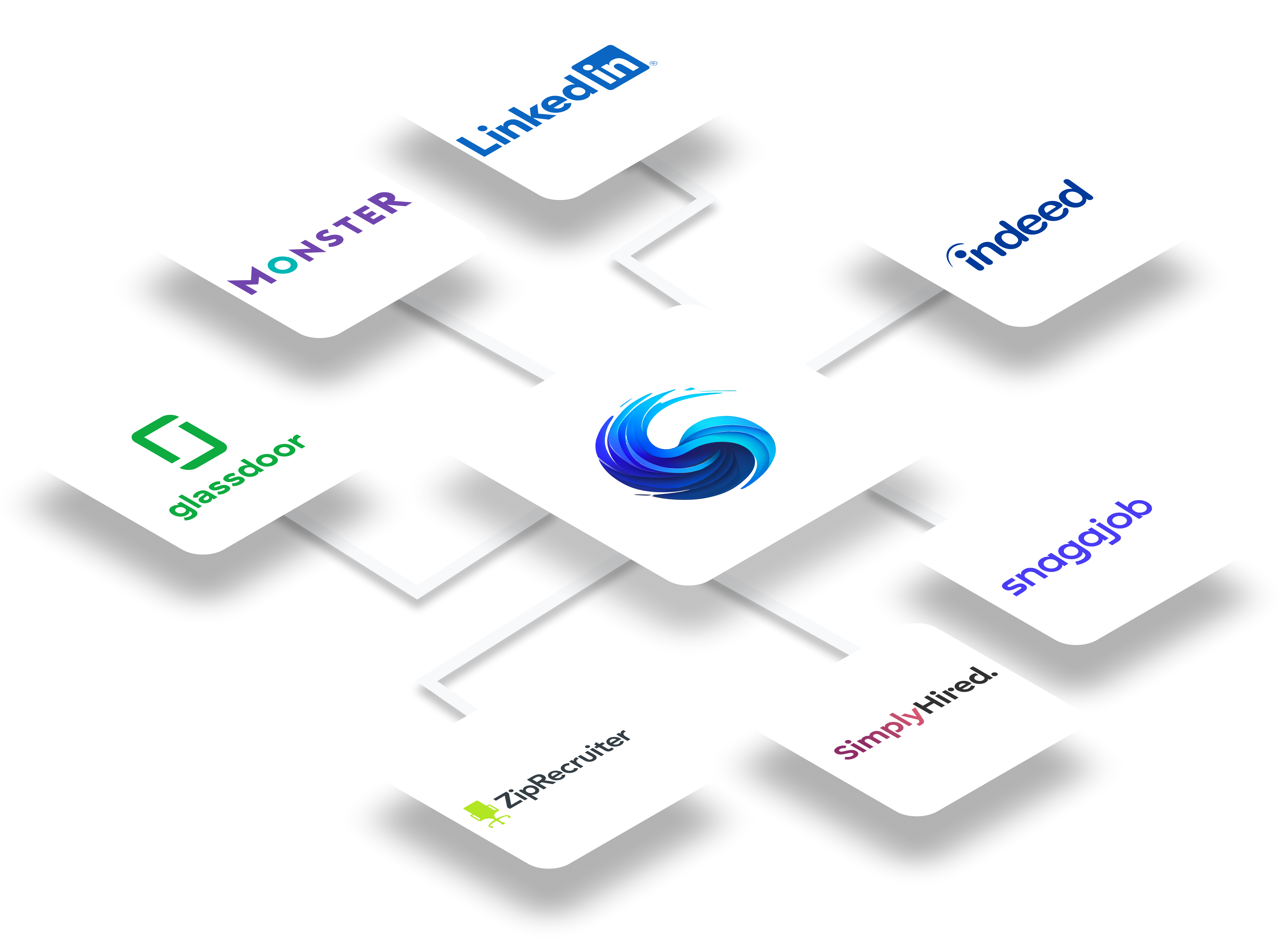 Integrated with LinkedIn, Indeed, ZipRecruiter, Glassdoor, SimplyHired, Monster, and SnagaJob.